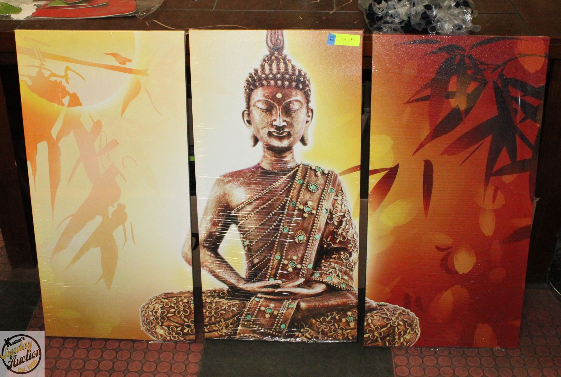 BRAND NEW 3 PANEL BUDDHA WALL ART ORANGE 16 X 32"