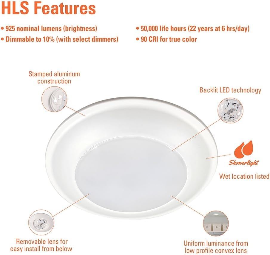 MODEL: HLS6099301EWH-6BP, SHOWERLIGHT/ENERGY STAR RATED, DIMMABLE, 3000K, AMZ SES *PACKAGING VARIES* **ALL ITEMS MUST BE REMOVED BY 5PM SATURDAY, AUGUST 3RD 2024. ALL REMAINING ITEMS WILL BE SUBJECT TO A $6.00 PER DAY STORAGE CHARGE. ANY ITEMS REMAINING AFTER MONDAY, AUGUST 19TH 2024 WILL BE CONSIDERED FORFEITED. NO REFUNDS WILL BE ISSUED FOR FORFEITED ITEMS. TO SCHEDULE A PICK UP APPOINTMENT CLICK HERE