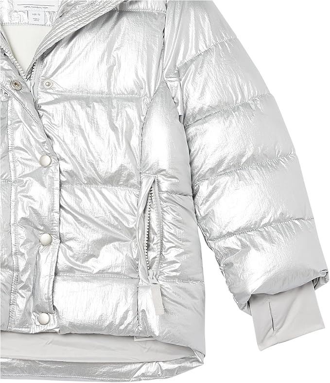LINED HOODED PUFFER COAT, METALLIC, AMZ SES