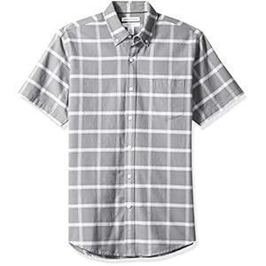 SHORT SLEEVE POCKET OXFORD SHIRT, GREY WINDOWPANE, AMZ SES