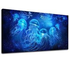 BRAND NEW BLUE JELLYFISH WALL ART 60 X 120CM