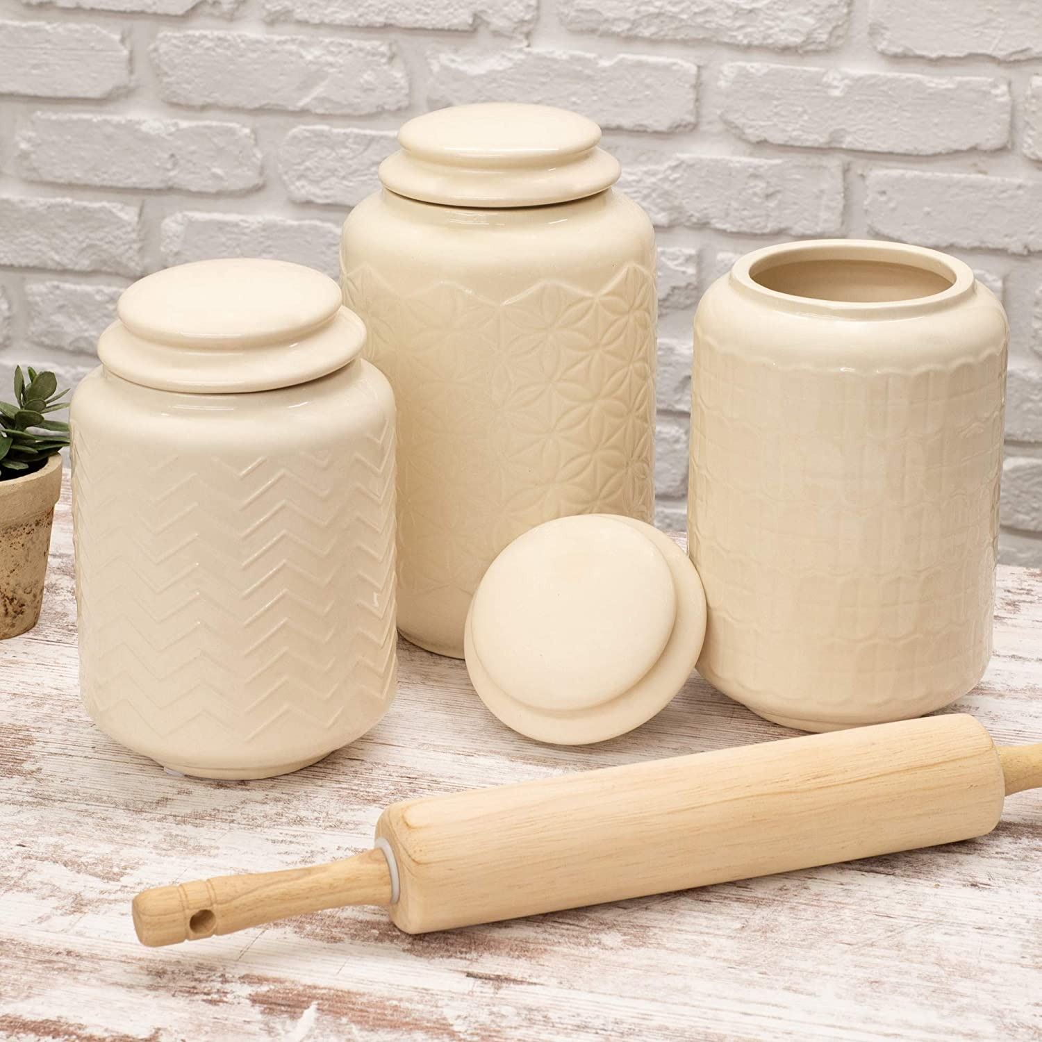 9.5" X 9.5" CERAMIC KITCHEN STORAGE CANNISTERS WITH LIDS, SET OF 3, AMZ SES **ALL ITEMS MUST BE REMOVED BY 5PM FRIDAY, SEPTEMBER 2ND, 2022. ALL REMAINING ITEMS WILL BE SUBJECT TO A $6.00 PER DAY STORAGE CHARGE. ANY ITEMS REMAINING AFTER FRIDAY, SEPTEMBER 2, 2022 WILL BE CONSIDERED FORFEITED. NO REFUNDS WILL BE ISSUED FOR FORFEITED ITEMS.** TO SCHEDULE A PICK UP APPOINTMENT. CLICK HERE