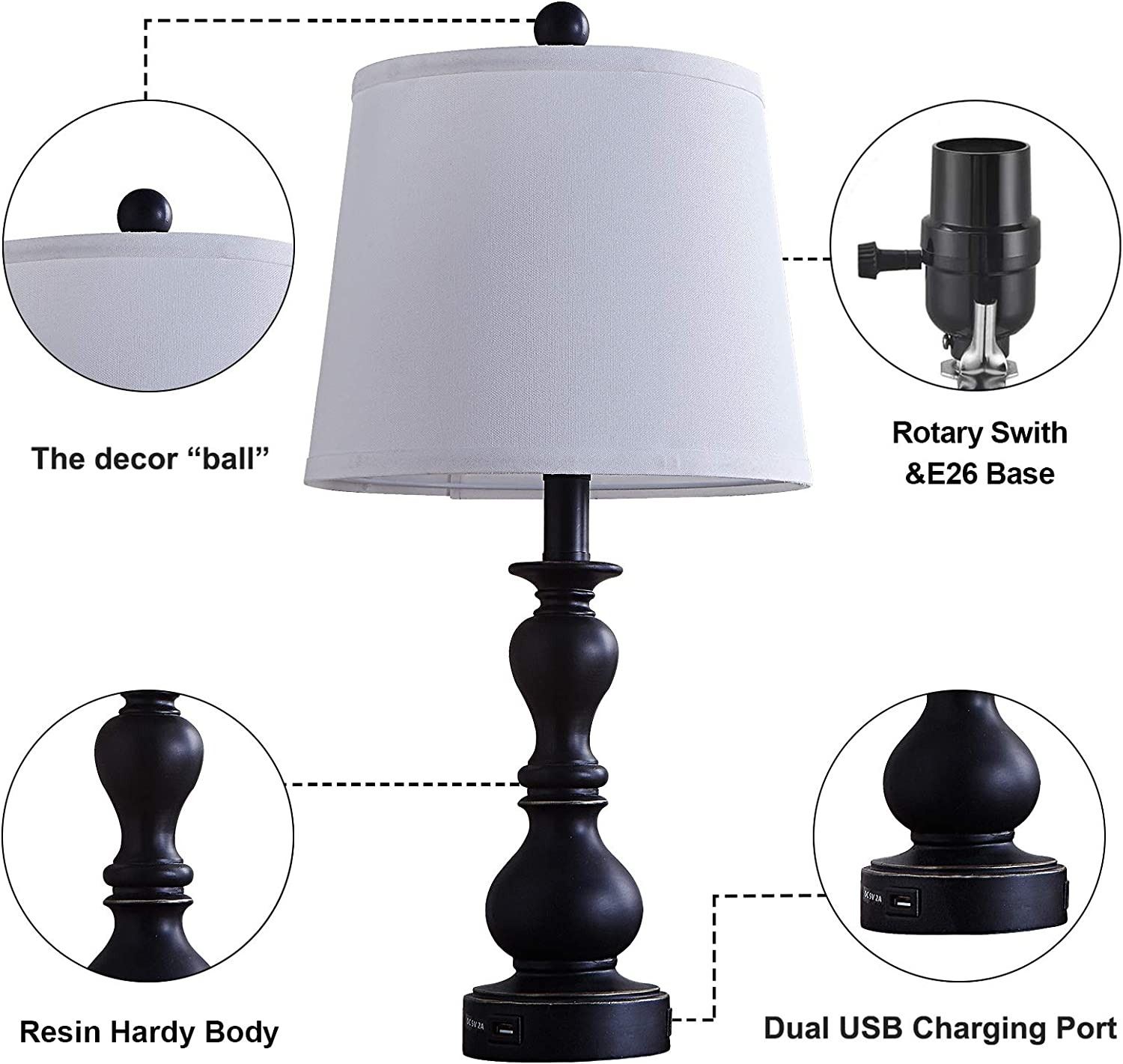 BRAND NEW DUNGOO SET OF 2 RESIN TABLE LAMPS WITH