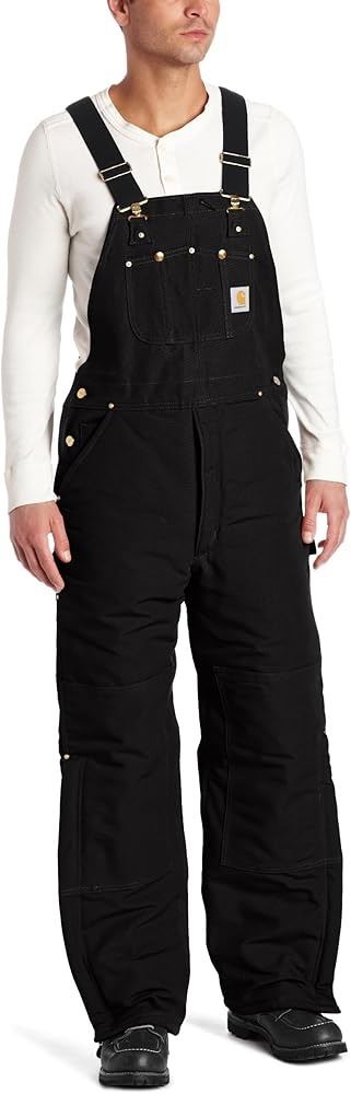 ESSENTIALS MEN'S DUCK BIB QUILT LINED OVERALL, BLACK, 34W X 28L