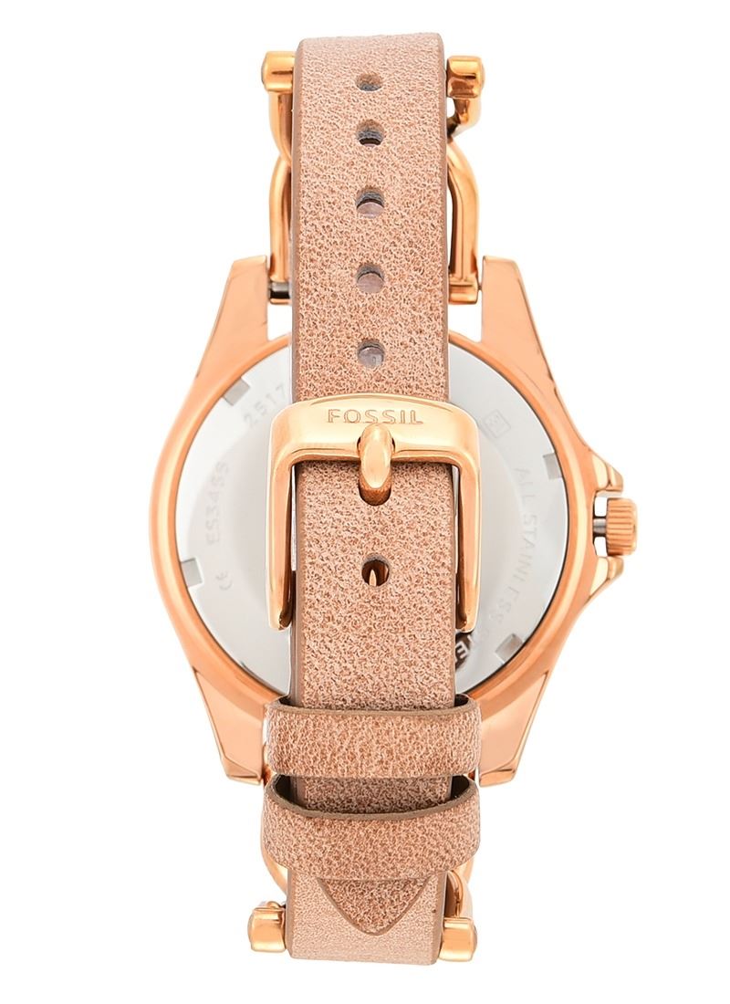 ST. STEEL & TAN LEATHER STRAP WATCH.