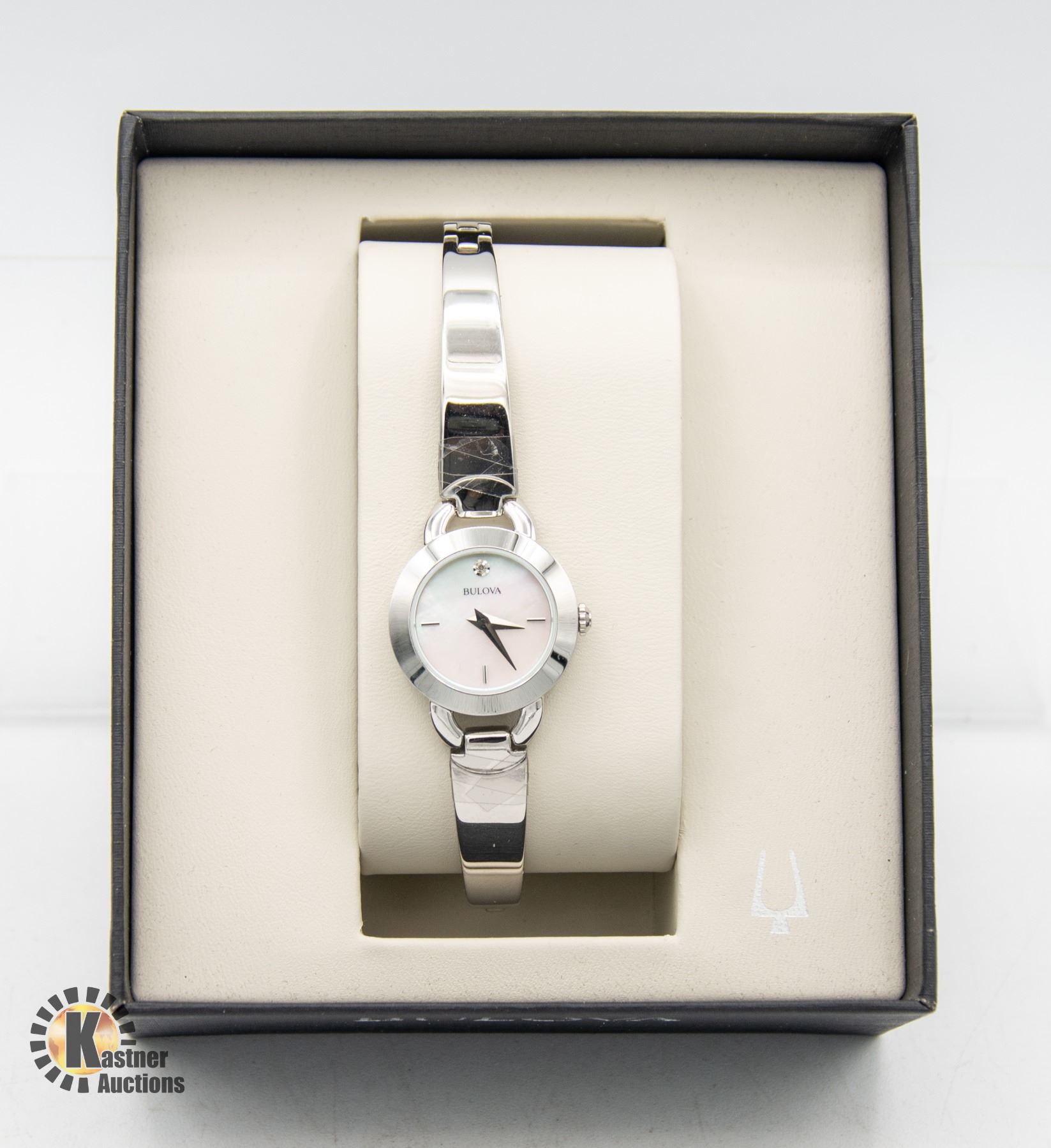 MOTHER OF PEARL DIAL AND COMES WITH ORIGINAL BOX AND BRAND NEW BATTERY MSRP $259.00 **ALL ITEMS MUST BE REMOVED BY 5PM SATURDAY, DECEMBER 16TH 2023. ALL REMAINING ITEMS WILL BE SUBJECT TO A $6.00 PER DAY STORAGE CHARGE. ANY ITEMS REMAINING AFTER TUESDAY, JANUARY 2ND 2023 WILL BE CONSIDERED FORFEITED. NO REFUNDS WILL BE ISSUED FOR FORFEITED ITEMS. TO SCHEDULE A PICK UP APPOINTMENT CLICK HERE
