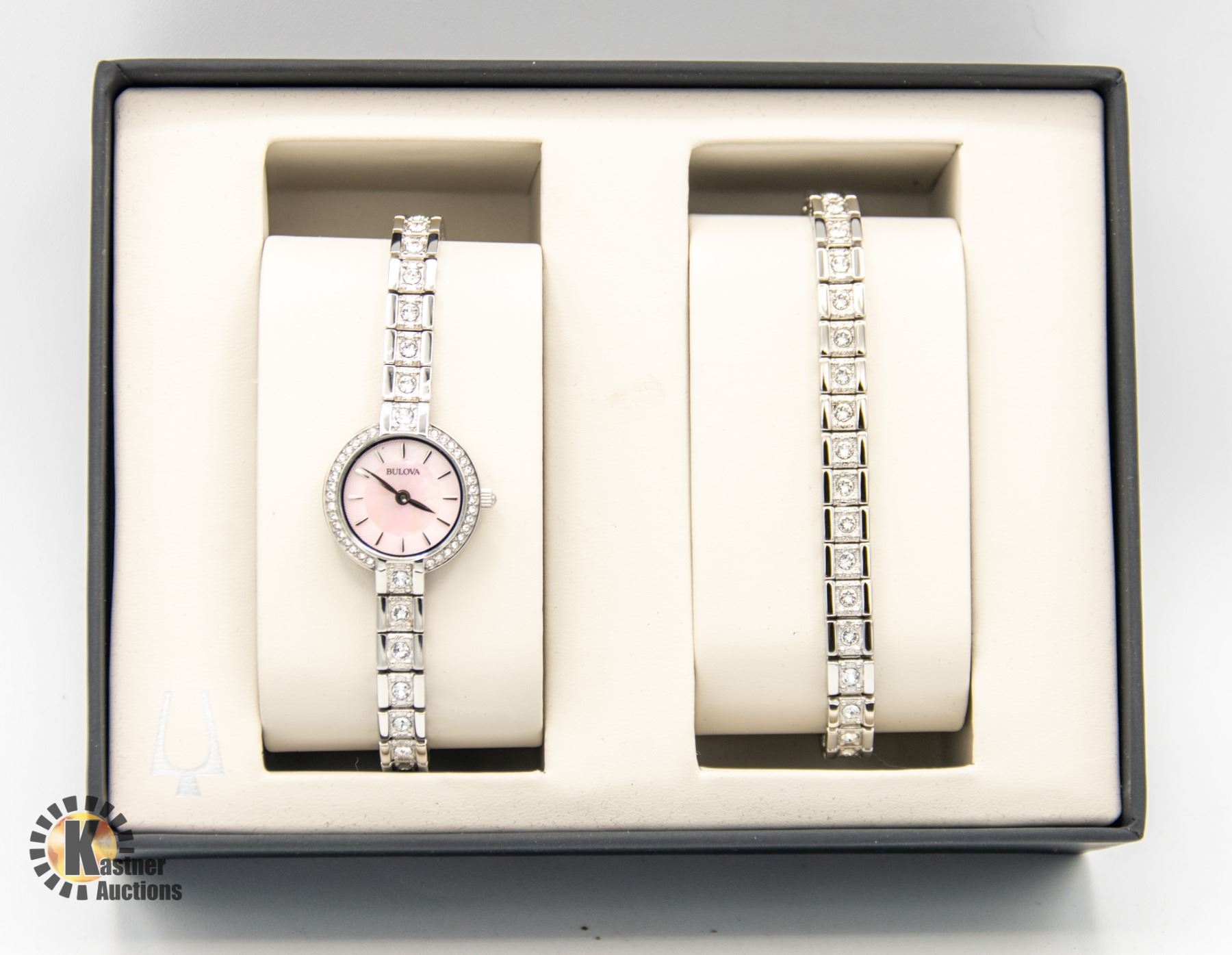 MOTHER OF PEARL FACE WITH SWAROVSKI CRYSTALS, 81 IN TOTAL, IN BOTH THE STRAP AND MATCHING TENNIS BRACELET. MSRP $375.00 NEW BATTERY **ALL ITEMS MUST BE REMOVED BY 5PM SATURDAY, SEPTHEMBER 16TH 2023. ALL REMAINING ITEMS WILL BE SUBJECT TO A $6.00 PER DAY STORAGE CHARGE. ANY ITEMS REMAINING AFTER MONDAY, OCTOBER 2ND, 2023 WILL BE CONSIDERED FORFEITED. NO REFUNDS WILL BE ISSUED FOR FORFEITED ITEMS. TO SCHEDULE A PICK UP APPOINTMENT CLICK HERE