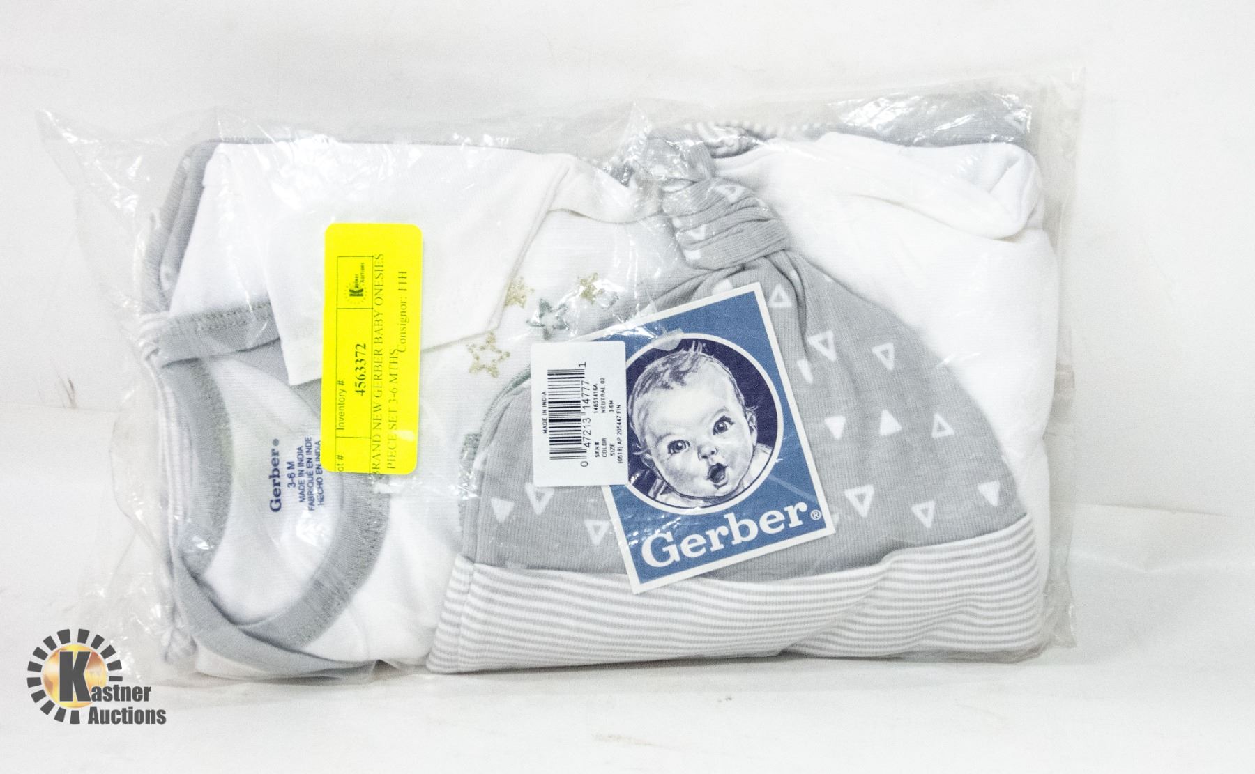 BRAND NEW GERBER BABY ONESIES 4 PIECE SET 3-6 MTHS