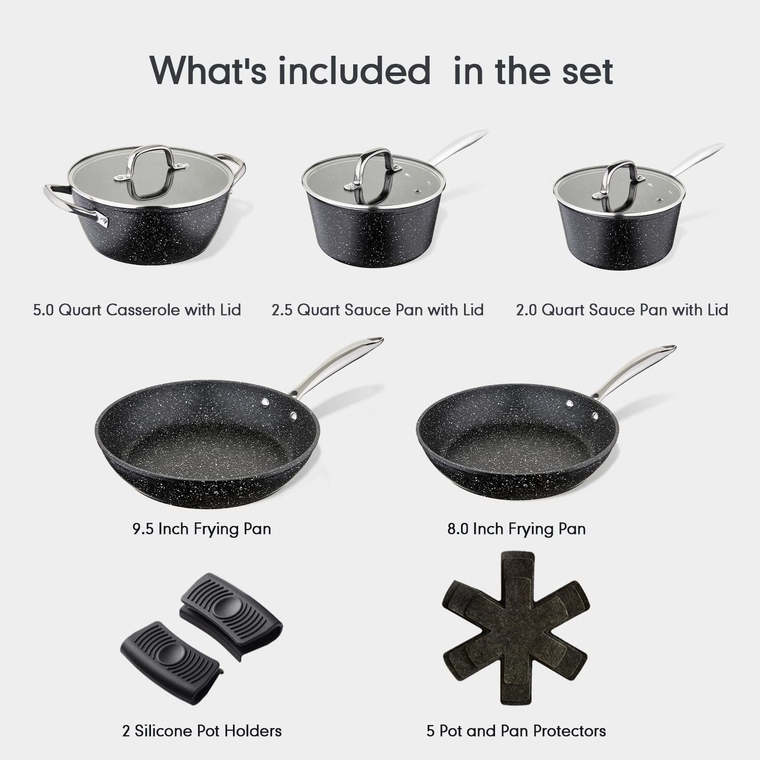 INCLUDES 8" AND 9.5" SKILLET, 2QT AND 2.5QT SAUCE PANS WITH LIDS, 9.5" CASSEROLE WITH LID, 2 SILICONE POT HOLDERS AND 5 POT AND PAN PROTECTORS, PARTS/MANUAL CONFIRMED, AMZ SES **ALL ITEMS MUST BE REMOVED BY 5PM SATURDAY, DECEMBER 3RD, 2022. ALL REMAINING ITEMS WILL BE SUBJECT TO A $6.00 PER DAY STORAGE CHARGE. ANY ITEMS REMAINING AFTER MONDAY, DECEMBER 18TH, 2022 WILL BE CONSIDERED FORFEITED. NO REFUNDS WILL BE ISSUED FOR FORFEITED ITEMS. TO SCHEDULE A PICK UP APPOINTMENT CLICK HERE