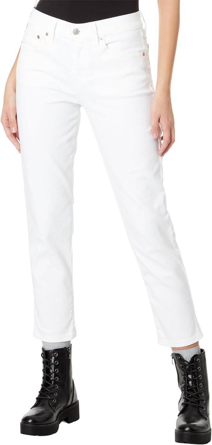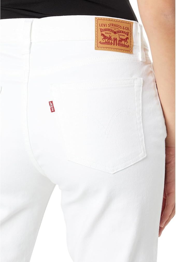 WOMENS WITH A MID RISE WAIST , RELAXED THROUGH HIP AND THIGH AND TAPERED LEG - WHITE IN COLOUR