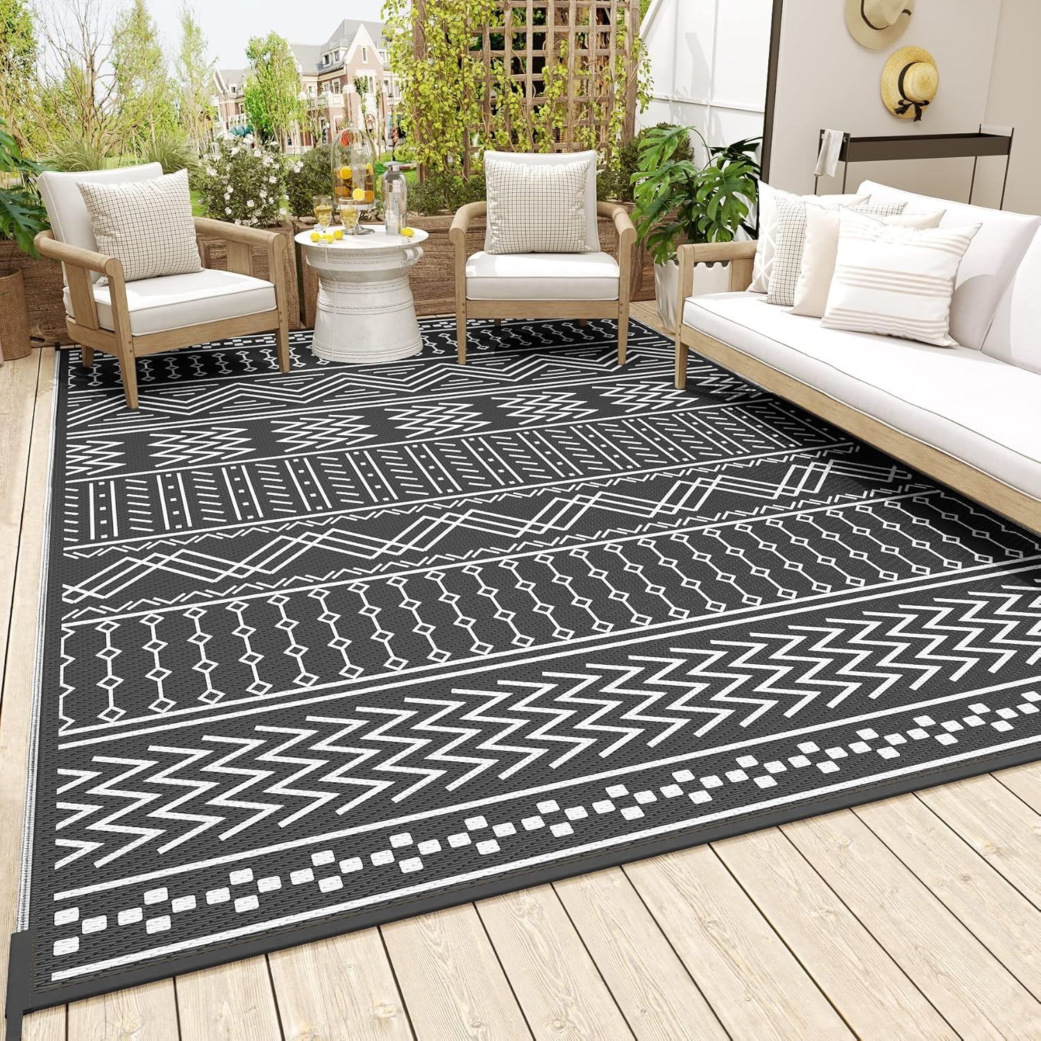 BRAND NEW OUTDOOR RUG PATIO BLACK & WHITE 8X10FT