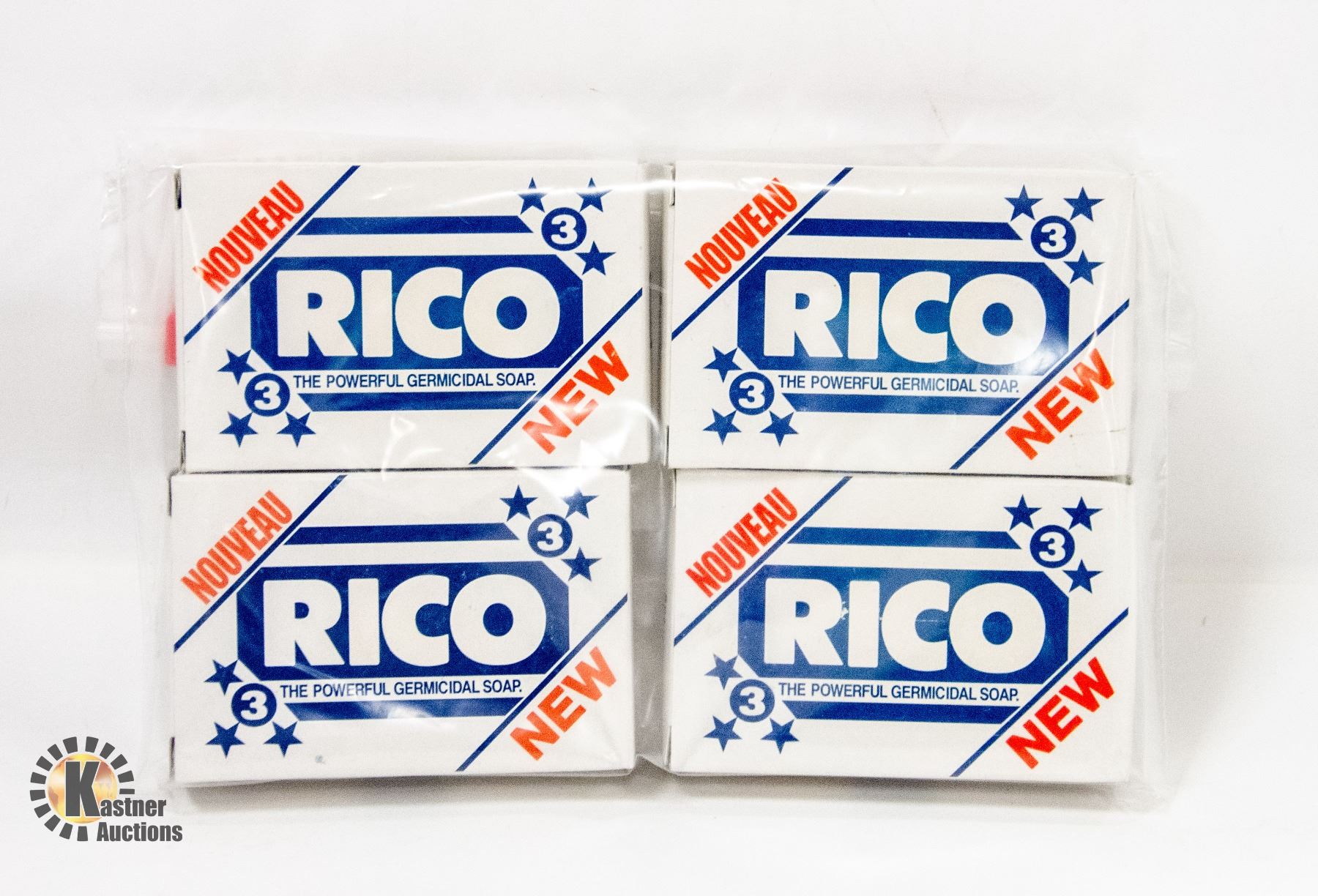 BRAND NEW, PACK OF 4 BARS, RICO GERMICIDAL SOAP GIVES A LUXURIOUS LATHER WHICH GENTLY AND THOROUGHLY CLEANSES THE SKIN. AMZ SES **ALL ITEMS MUST BE REMOVED BY 5PM SATURDAY, AUGUST 24th 2024. ALL REMAINING ITEMS WILL BE SUBJECT TO A $6.00 PER DAY STORAGE CHARGE. ANY ITEMS REMAINING AFTER MONDAY, SEPTEMBER 16TH 2024 WILL BE CONSIDERED FORFEITED. NO REFUNDS WILL BE ISSUED FOR FORFEITED ITEMS. TO SCHEDULE A PICK UP APPOINTMENT CLICK HERE