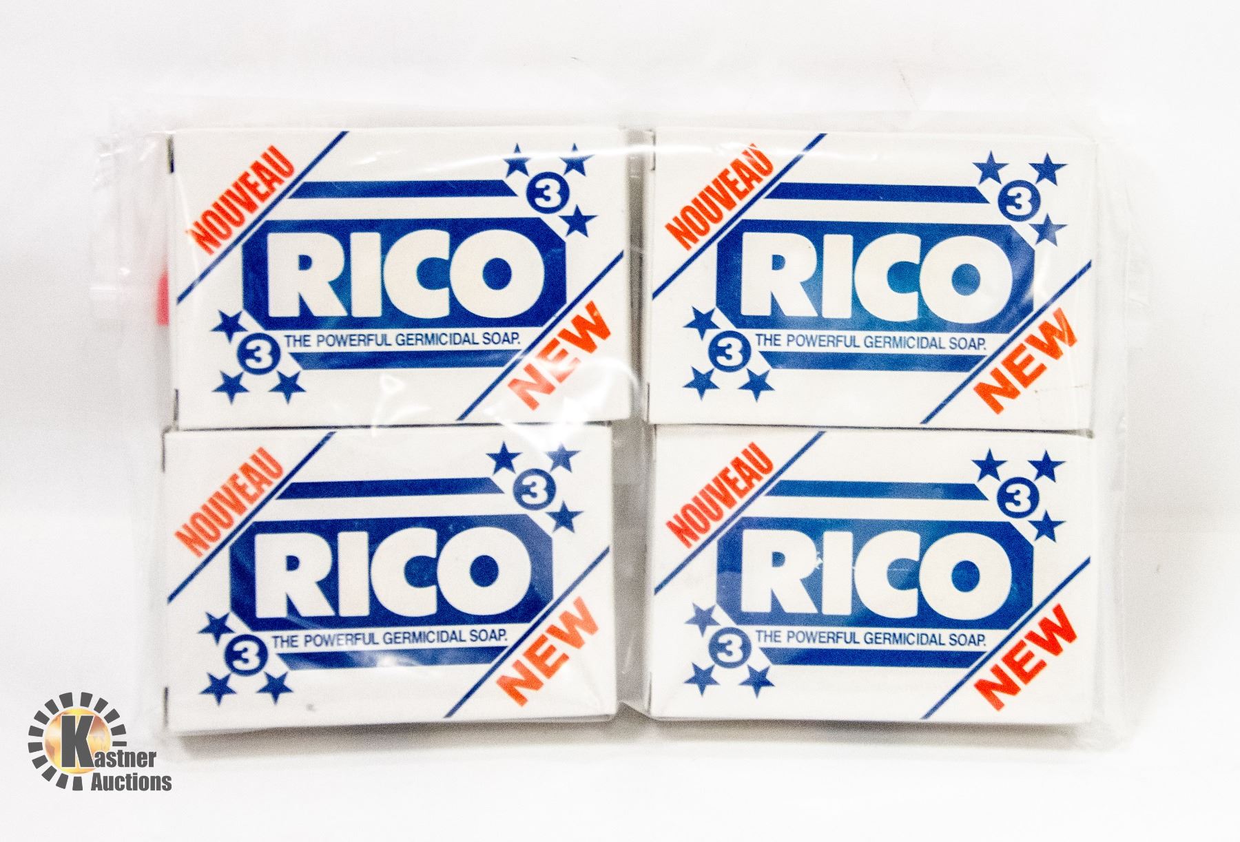 BRAND NEW, PACK OF 4 BARS, RICO GERMICIDAL SOAP GIVES A LUXURIOUS LATHER WHICH GENTLY AND THOROUGHLY CLEANSES THE SKIN. AMZ SES **ALL ITEMS MUST BE REMOVED BY 5PM SATURDAY, AUGUST 24th 2024. ALL REMAINING ITEMS WILL BE SUBJECT TO A $6.00 PER DAY STORAGE CHARGE. ANY ITEMS REMAINING AFTER MONDAY, SEPTEMBER 16TH 2024 WILL BE CONSIDERED FORFEITED. NO REFUNDS WILL BE ISSUED FOR FORFEITED ITEMS. TO SCHEDULE A PICK UP APPOINTMENT CLICK HERE