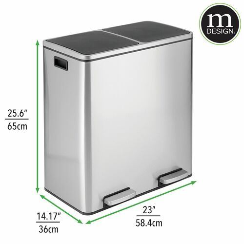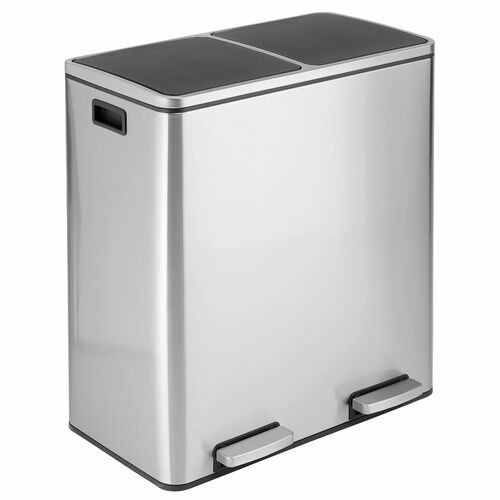 CAN, BRUSHED STAINLESS STEEL, MODERN DESIGN WITH SIDE HANDLES, SLOW RELEASE LIDS, REMOVEABLE LINER, AMZ SES