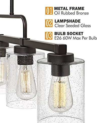 PENDANT LIGHT, 42" LENGTH, OIL RUBBED BRONZE WITH CLEAR SEEDED GLASS HURRICANES, ALL PARTS, HARDWARE, MANUAL CONFIRMED AND CHECKED, AMZ SES