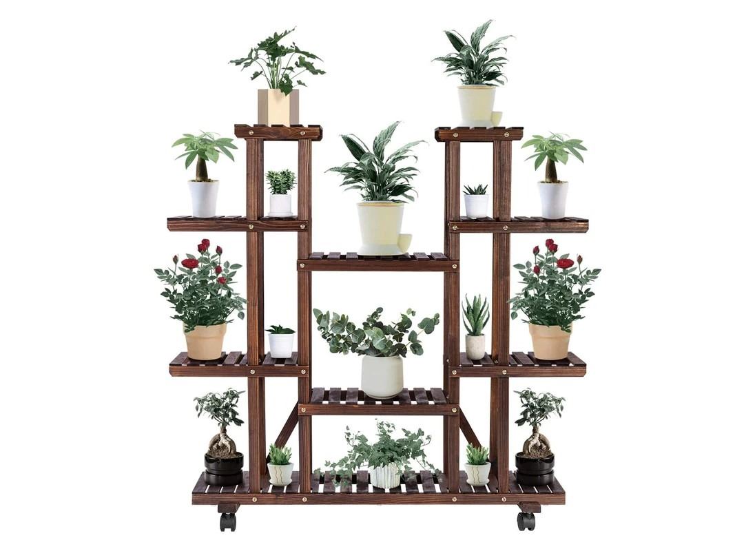 PLANT STAND WITH 17 SECTIONS FOR POTS, BROWN, ALL PARTS AND MANUAL CONFIRMED, IN ORIGINAL BOX, AMZ SES