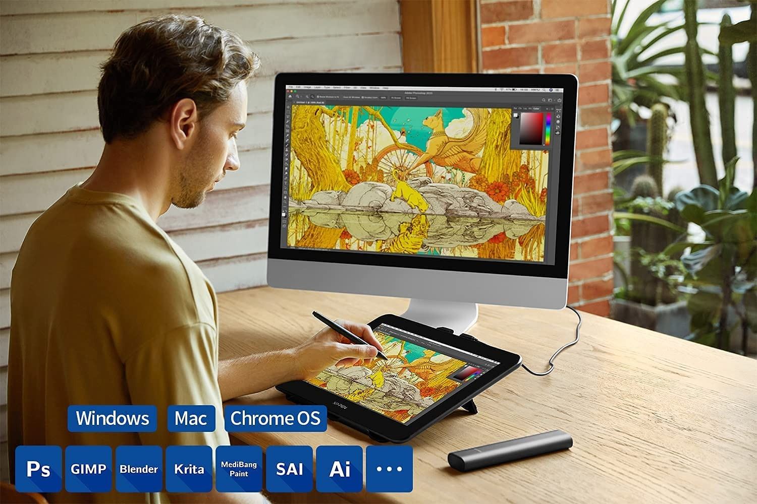 DRAWING TABLET, 15.6" GRAPHIC DRAWING MONITOR - CREATIVE PEN DISPLAY DRAWING TOUCH SCREEN WITH 92% ADOBE RGB AND 8192 PEN, TESTED, ALL PARTS CONFIRMED, MANUAL AND ORIGINAL BOX INCLUDED, AMZ SES, MSRP. $1399
