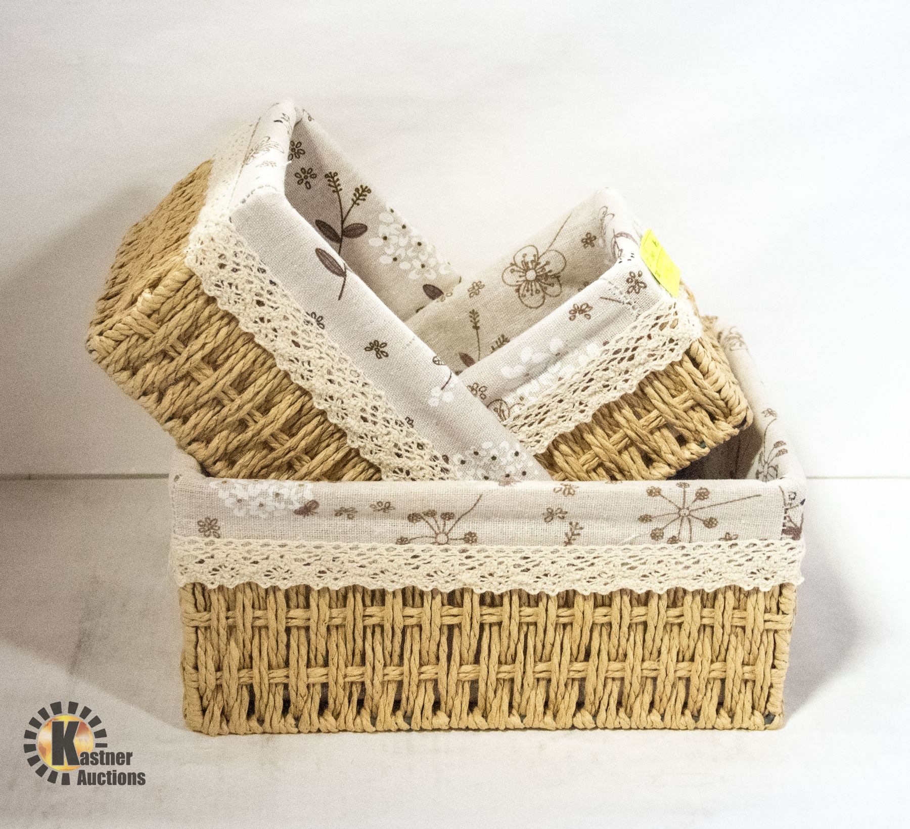 BRAND NEW SET OF 3 ROPE WOVEN TIDY STORAGE BASKETS