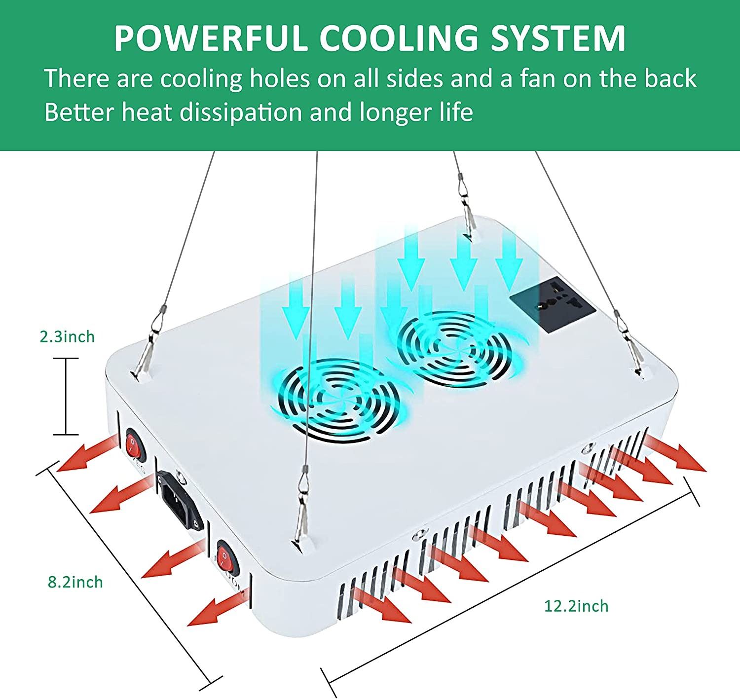 FULL SPECTRUM, DOUBLE SWITCH VEG AND BLOOM, ADJUSTABLE ROPES AND GLASSES INCLUDED, TESTED, ALL PARTS CONFIRMED, INSTRUCTION MANUAL INCLUDED, AMZ SES