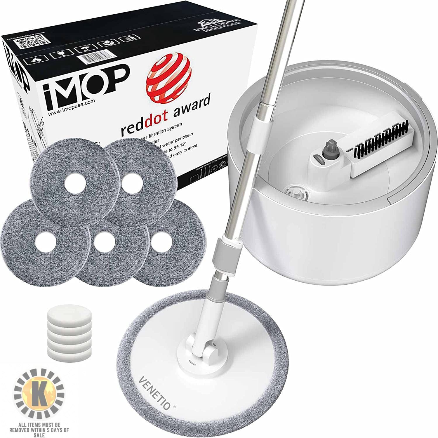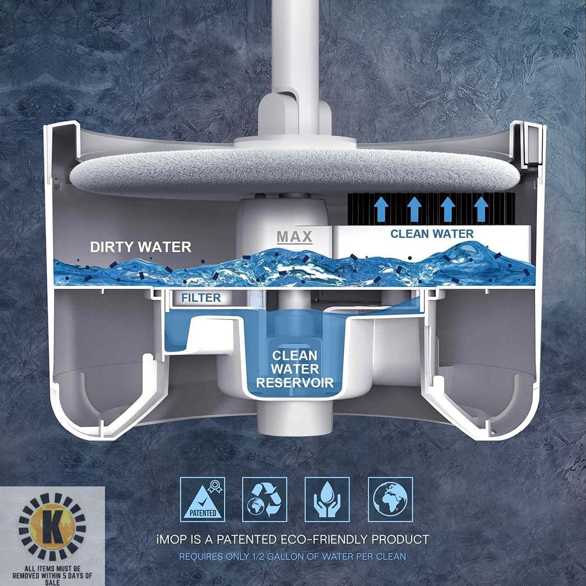 BUCKET SET WITH PATENTED INTERNAL WATER FILTRATION SYSTEM, SELF CLEANING DRY AND WET FLOOR MOP, 6 PADS, WHITE/GREY DESIGN, PARTS CONFIRMED AND CHECKED, MINOR SUPERFICIAL DAMAGE TO OUTER ORIGINAL BOX, AMZ SES. ALL ITEMS MUST BE REMOVED WITHIN 5 DAYS OF SALE