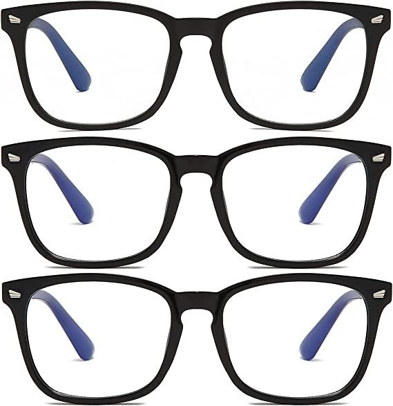 LIGHT GLASSES WITH CARRYING POUCH, CLEANING CLOTH, BLUE LIGHT TESTER AND CASE, REDUCES EYE FATIGUE, (MATTE BLACK / BRIGHT BLACK / BRIGHT BLACK) AMZ SES