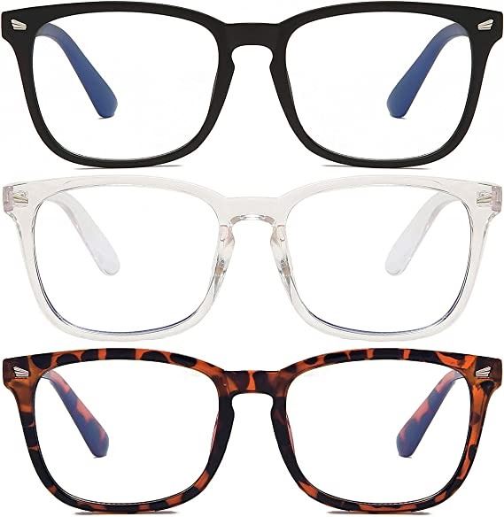 LIGHT GLASSES WITH CARRYING POUCH, CLEANING CLOTH, BLUE LIGHT TESTER AND CASE, REDUCES EYE FATIGUE, (MATTE BLACK / TRANSPARENT / LEOPARD) AMZ SES