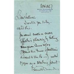<b>854. LOUIS D. BRANDEIS </b>(1856 - 1941) Associate Justice of the Supreme Court, remembered for his powerful devotion to the freedom of speech. A.L.S<i>. "Louis D. Brandeis</i>" 1p. 8vo., New York, Oct. 28 [n.y.] to journalist Mark Sullivan. In part: <i>"ÉYou would make a most effective showing by taking June 30/04 (about the time of Mullin's advent to the Co.) instead of 1900 as a starting pointÉ</i>". Near fine.<b> $200-300</b>