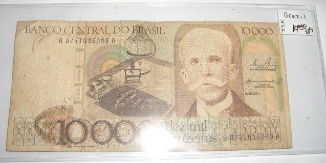 BRASIL 10,000 DEZ MIL CRUZEIROS SERIAL # A0731036099A BANK NOTE!! NOTE CAME OUT OF SAFE!! ***Coin, Currency & All Items Listed in this auction - Grades, Conditions and Values are not Safe Deposit Coins LLC Responsibilty. Grades, Condition and Values are determined by Consigner(s) & Buyers ONLY***