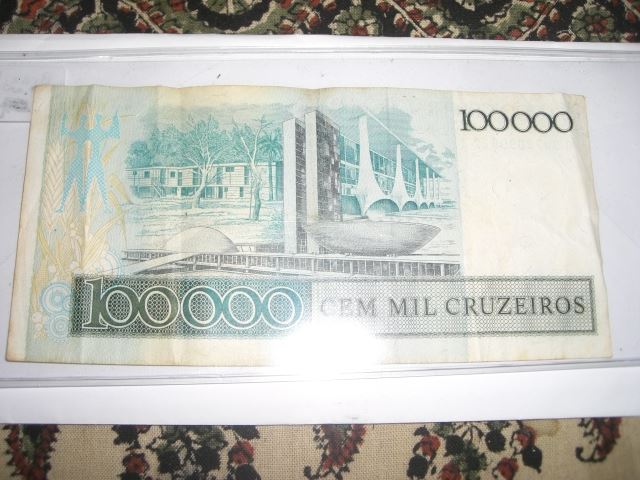 BRASIL 100,000 CEM MIL CRUZEIROS SERIAL # A3073090822A BANK NOTE!! NOTE CAME OUT OF SAFE!! ***Coin, Currency & All Items Listed in this auction - Grades, Conditions and Values are not Safe Deposit Coins LLC Responsibilty. Grades, Condition and Values are determined by Consigner(s) & Buyers ONLY***