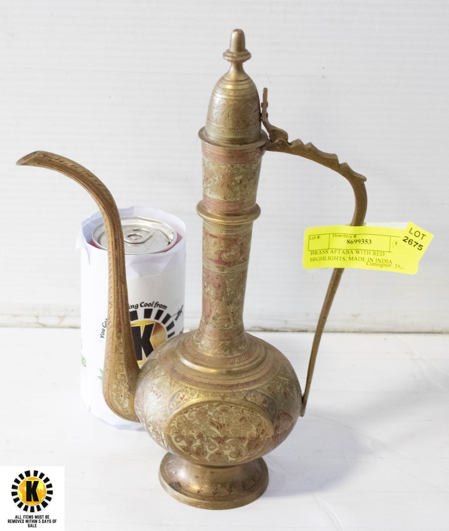 BRASS AFTABA WITH RED HIGHLIGHTS, MADE IN INDIA