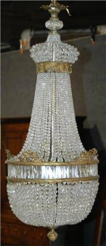 1 BRASS AND CRYSTAL CHANDELIER 40"h, 16"d early 20th century estimate 400-600