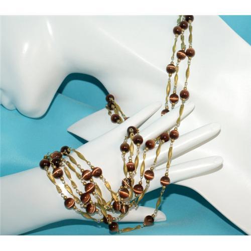 SOLID BRASS And TIGER EYE ART GLASS SPHERES GENUINE ANTIQUE NECKLACES... NOT Reproductions... RARE ACTUAL VINTAGE ANTIQUES!!! FREE GIFT WRAPPING!!!</em></td>