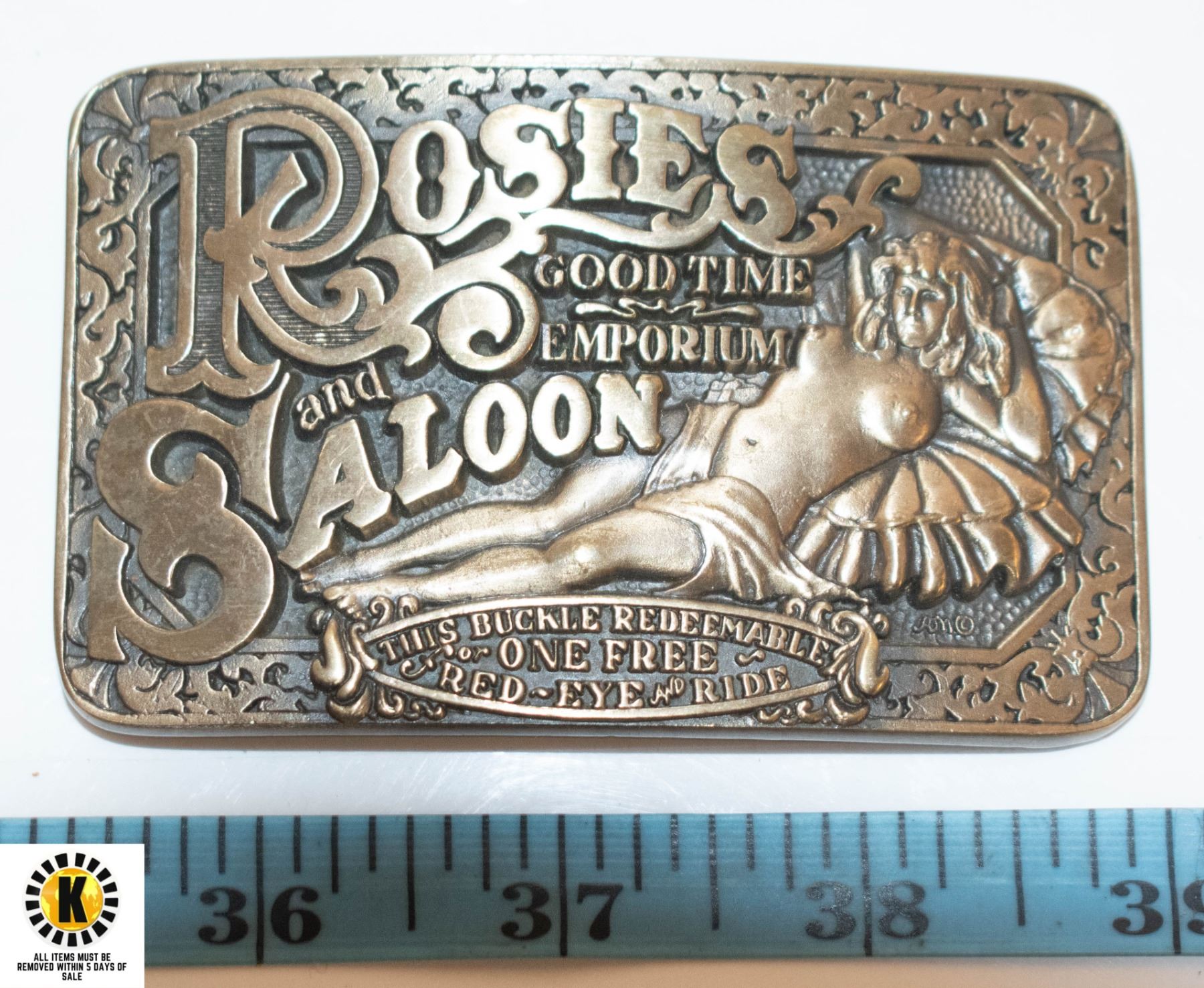 BRASS BELT BUCKLE "ROSIES" GOOD TIMES EMPORIUM