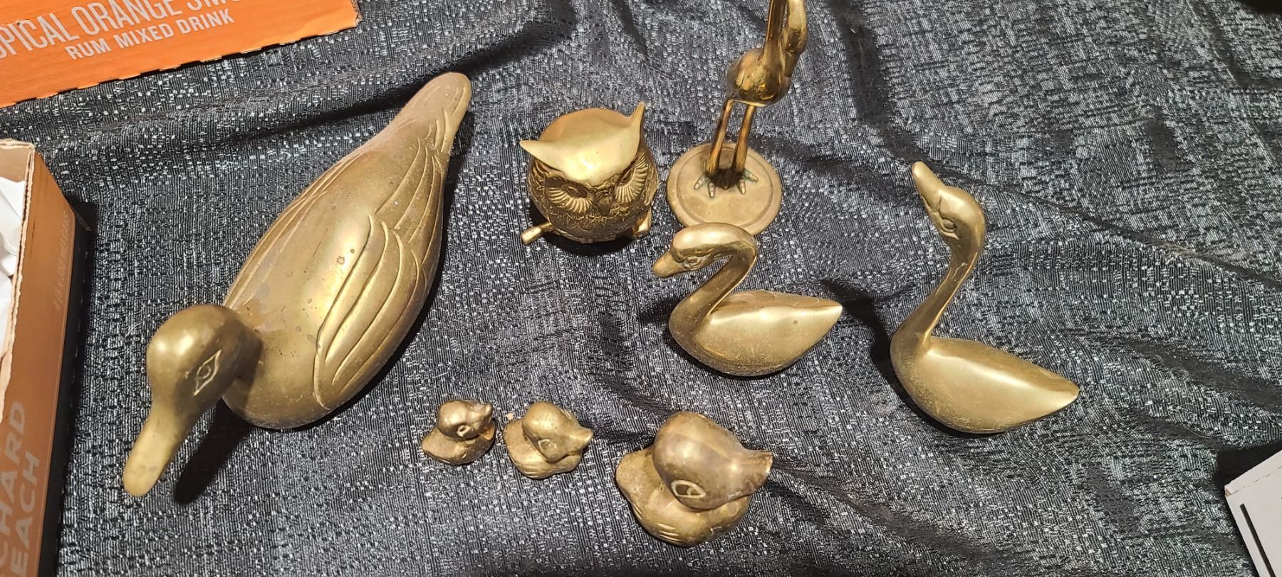BRASS BIRDS: DUCKS, OWL, CRANE, SWAN