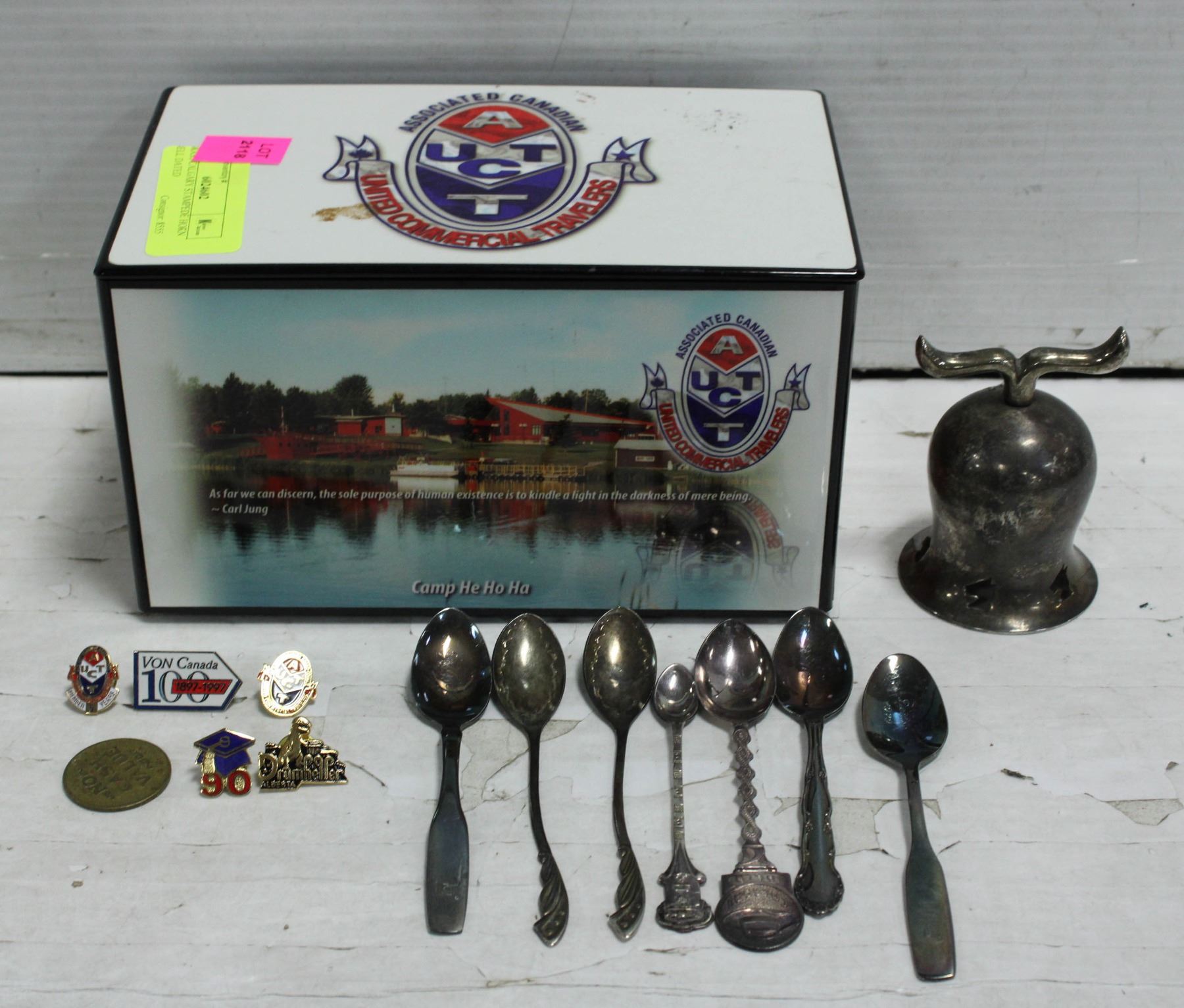 2000 WITH COLLECTIBLE SILVER PLATED CANADIAN SPOONS, PINS ALL TOGETHER IN A CANADIAN UNUTED COMMERCIAL TRAVELERS LIDDED CONTAINER **ALL ITEMS MUST BE REMOVED BY 5PM SATURDAY, SEPTEMBER 2ND 2024. ALL REMAINING ITEMS WILL BE SUBJECT TO A $6.00 PER DAY STORAGE CHARGE. ANY ITEMS REMAINING AFTER MONDAY, NOVEMBER 18TH 2024 WILL BE CONSIDERED FORFEITED. NO REFUNDS WILL BE ISSUED FOR FORFEITED ITEMS. TO SCHEDULE A PICK UP APPOINTMENT CLICK HERE