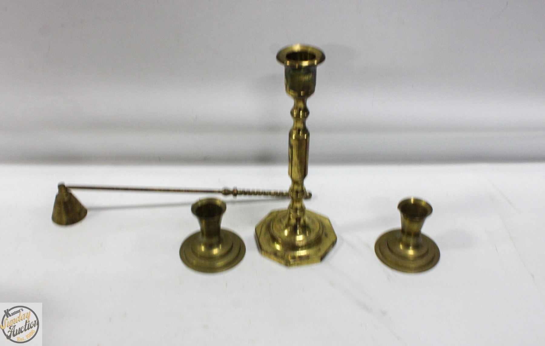 BRASS CANDLE HOLDERS SET, MADE IN ENGLAND &
