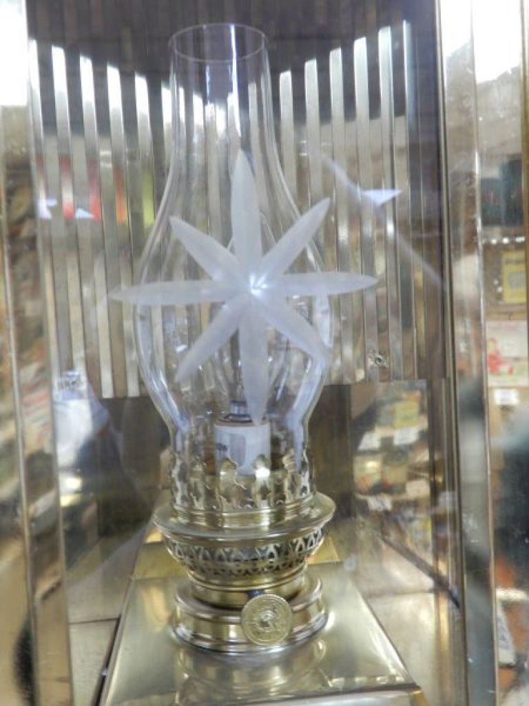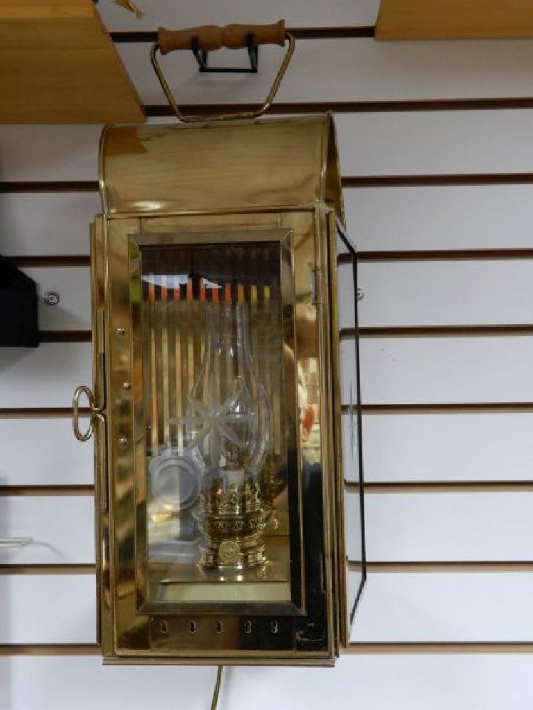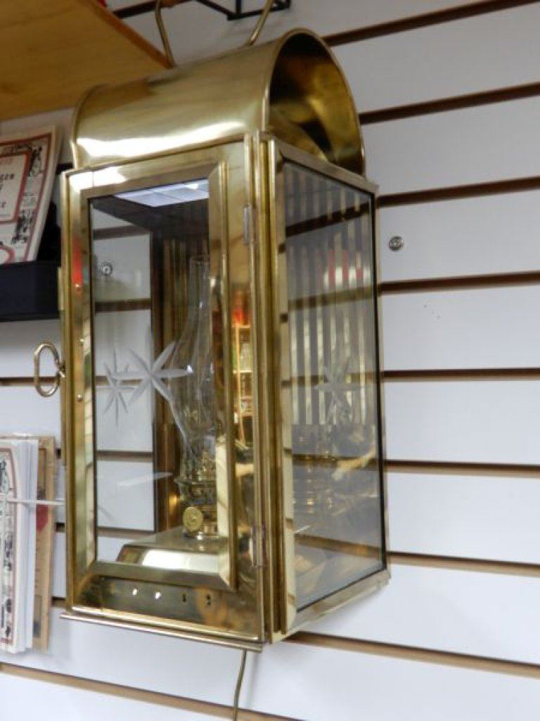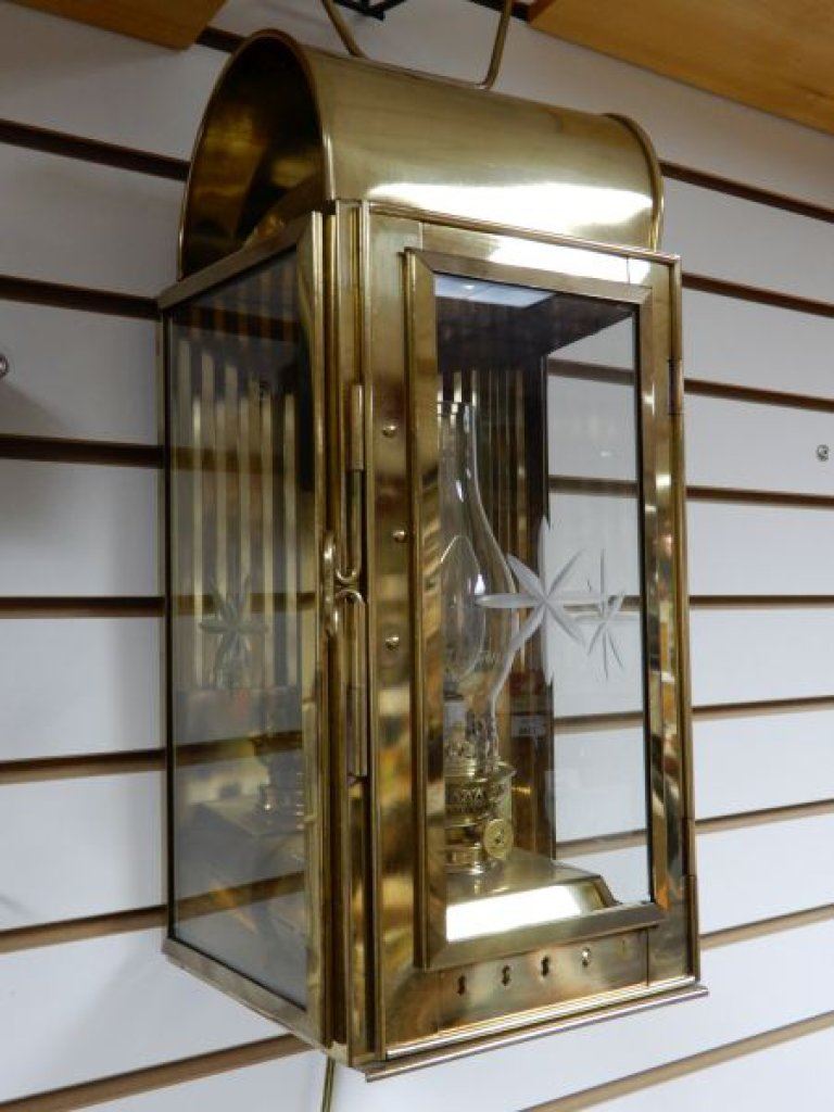 BRASS CARRIAGE LANTERN ETCHED GLASS - ELECTRIFIED - GOOD CONDITION LOCATION: LOWER LEFT
