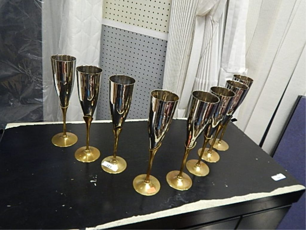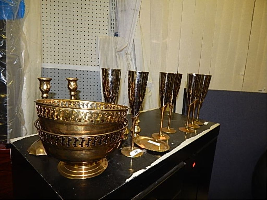 BRASS CHAMPAGNE FLUTES & LOT OF BRASS