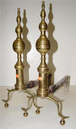 PAIR OF BRASS CHIPPENDALE STYLE ANDIRONS. Beehive form. Spur and ball feet. 18” H