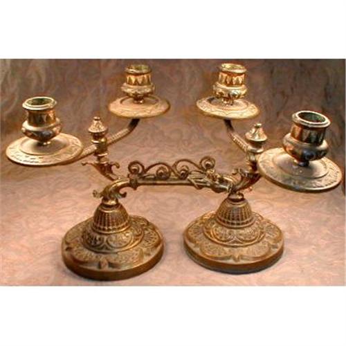 girandoles and other pieces of antique lighting. </td></tr><tr> <td> </td></tr><tr> <td>Reference #: 1490cndl</td></tr><tr><td>Condition:Very Good</td></tr><tr><td>Year:1850s-1890s</td></tr><tr><td>Height:7</td></tr><tr><td>Depth:6.5</td></tr><tr><td>Width:7.5</td></tr><tr><td>Weight:6</td></tr><tr><td>Title:BRASS Candlesticks SWIVEL PAIR Victorian</td></tr><tr><td>Style:Victorian</td></tr><tr><td>Location:Buffalo, NY</td></tr></table>