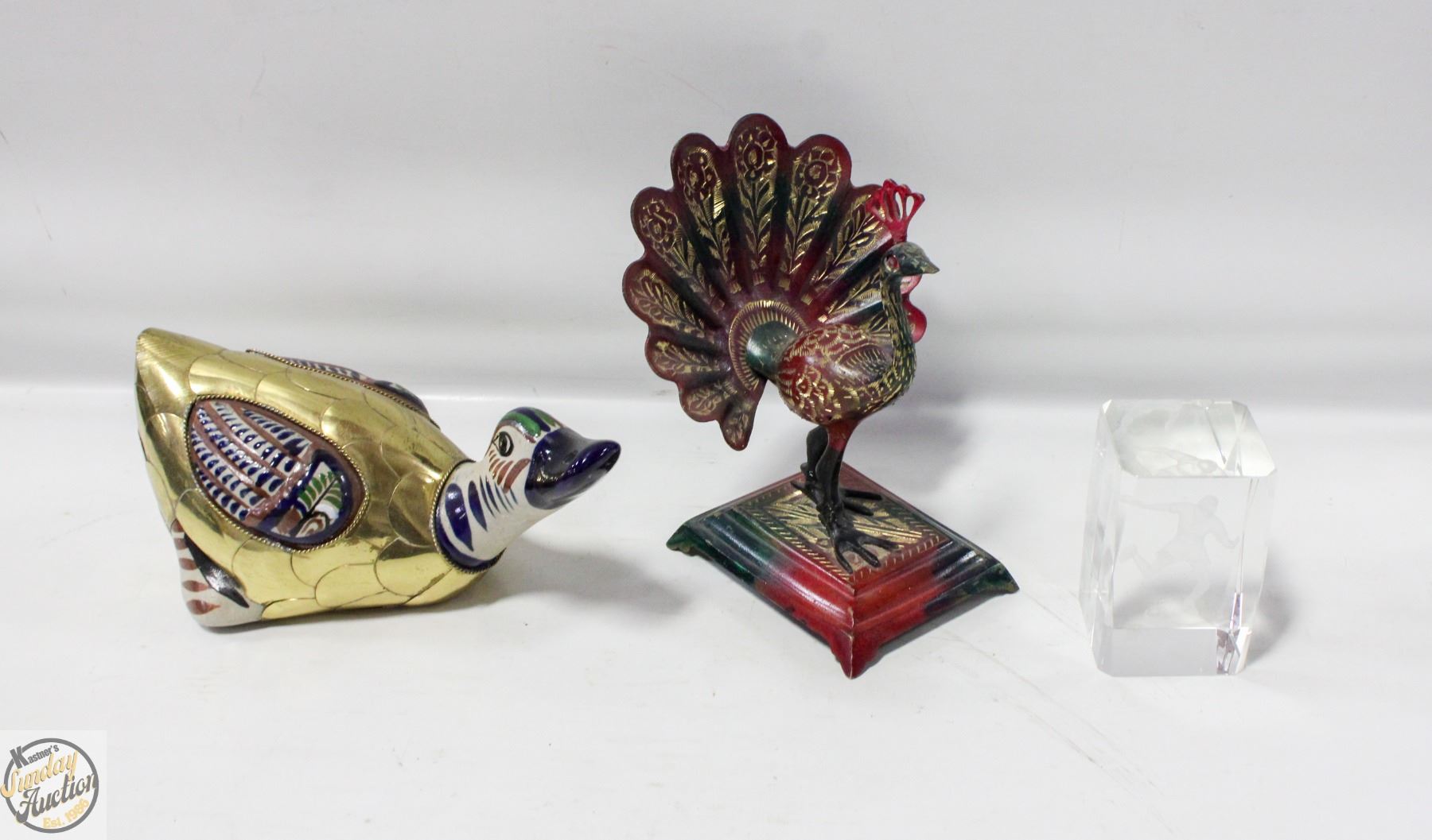 BRASS DUCK. METAL PEACOCK. 1 PEACE CRYSTAL