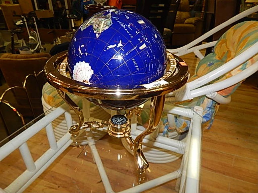 BRASS & GLASS GLOBE - INLAID PRECIOUS STONES AND MOTHER OF PREAL