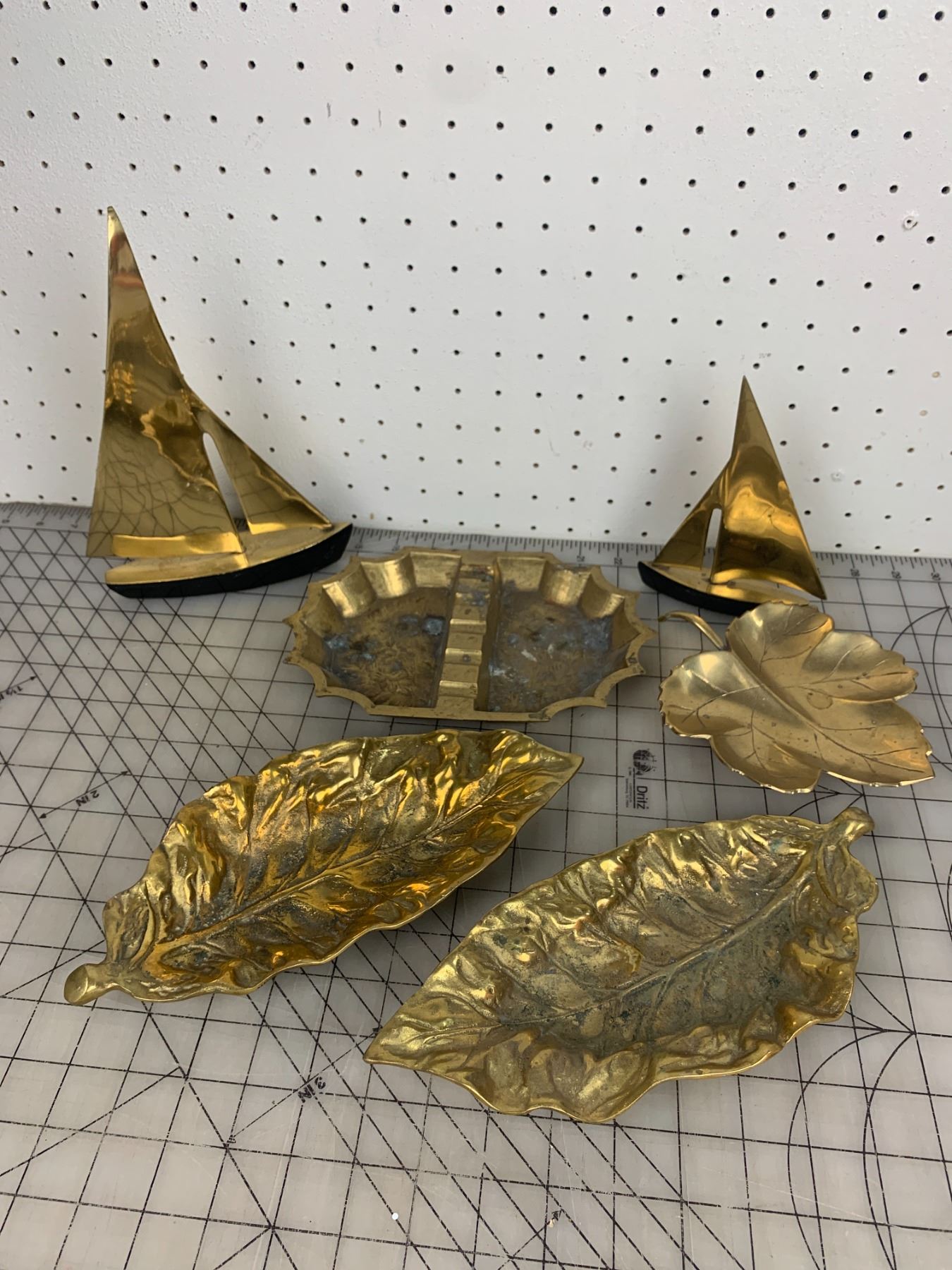BRASS LOT ASHTRAYS SAIL BOATS ETC