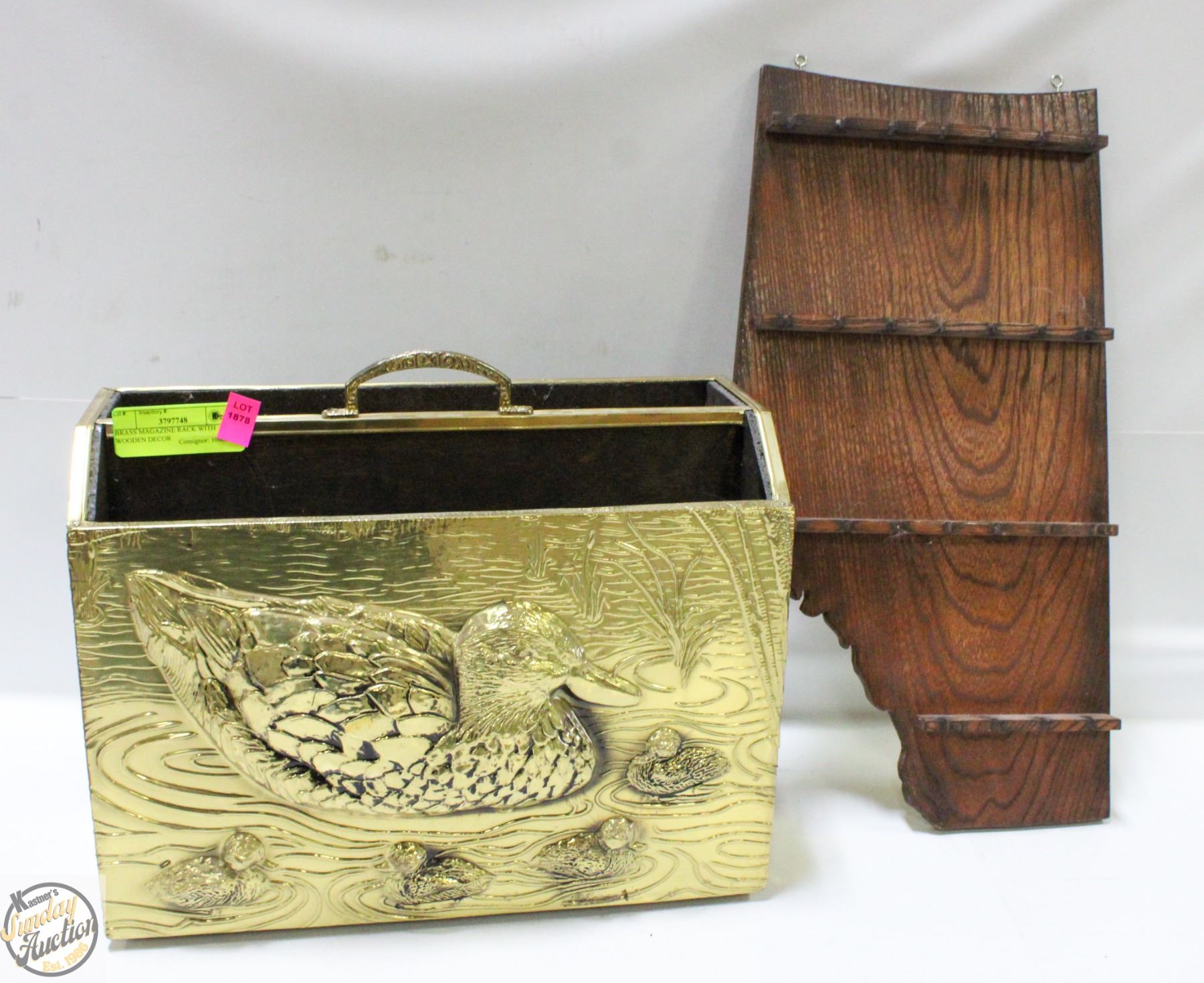 BRASS MAGAZINE RACK WITH WOODEN DECOR