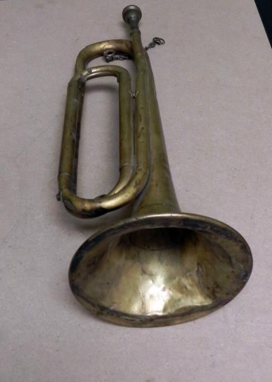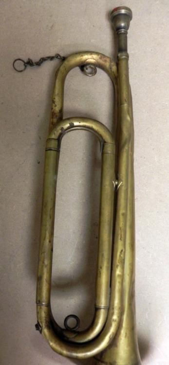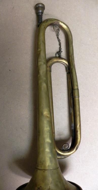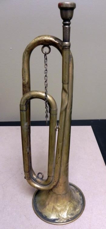 HERE IS A BRASS MILITARY BUGLE--COMPLETE. IT IS BEAT-UP, BUT STILL FUNCTIONAL.