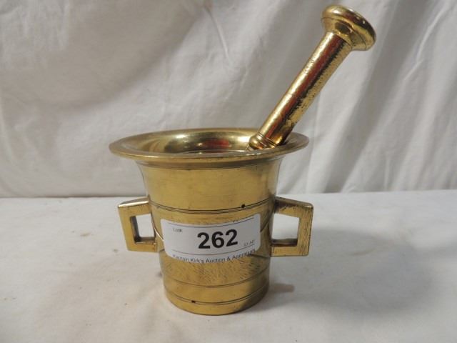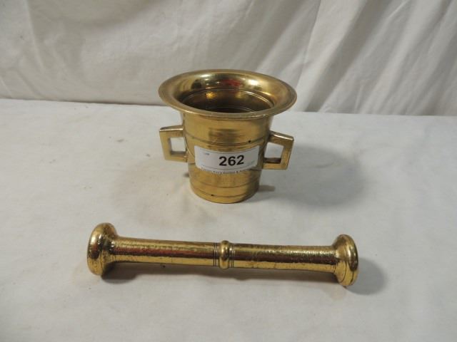 HANDLED, COMPLETE WITH MATCHING PESTLE. AS SHOWN. 5" IN DIAMETER, AND 5" TALL.