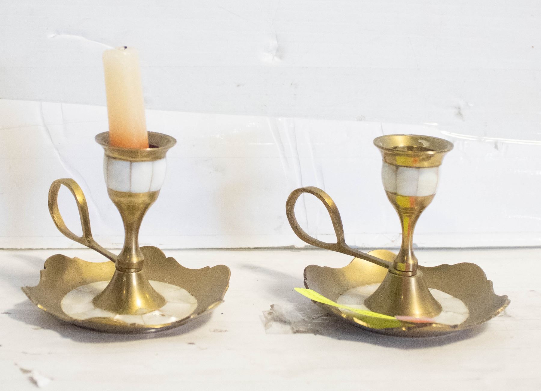 BRASS MOTHER OF PEARL CANDLE HOLDER
