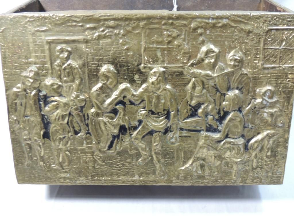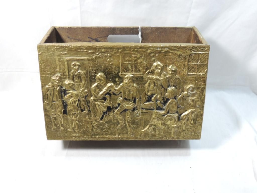 1950'S BRASS OVER WOOD MAGAZINE HOLDER. VINTAGE MAGAZINE HOLDER. AS SHOWN. SEE PHOTO FOR MORE DETAILS.