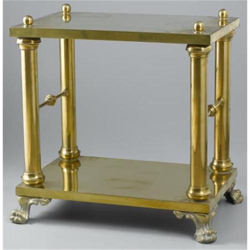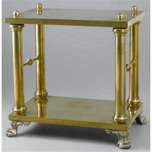 <B>BRASS PAW FOOT TABLE</B></I><BR><BR>Small rectangular two-tiered brass paw foot table<BR>24in. x 15-1/4in. x 24in. high<BR><BR> <B>Condition Report:</B> Normal signs of wear as appropriate with age; some minor surface scratching.<BR><BR><b>Shipping:</b> Miscellaneous Collectibles, Larg (<a target="_blank" href="http://www.heritageauctions.com/common/shipping.php">view shipping information</a>)
