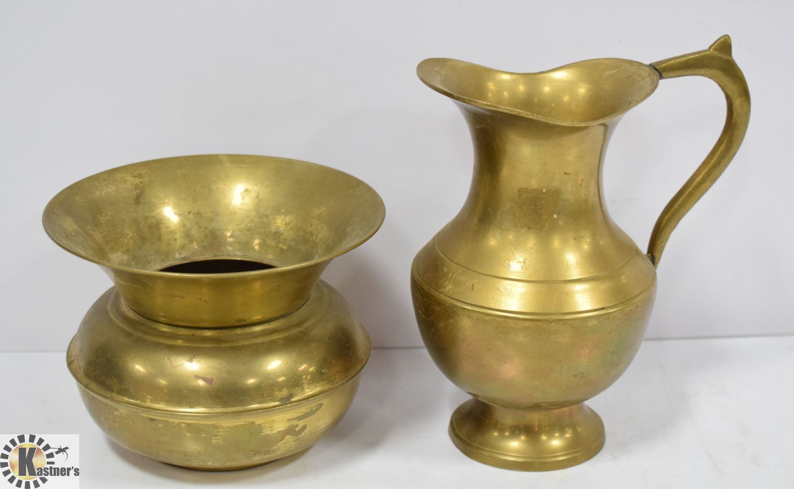 BRASS SPITOON AND KETTLE